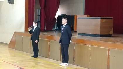 また、生徒会会長からは「悔いのない中学校生活を!」という内容の話がありました。今日が前期最終の中央委員会、文化祭に向けても頑張ってくれています。任期も残すところわずかとなってきましたが、生徒会や学級委員をはじめ、各種委員、学級独自の委員の皆さんよろしくお願いします。生徒の皆さんは、後期に向けて、生徒会等、新たな立候補も考えてみてください!
