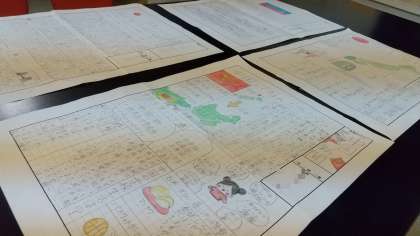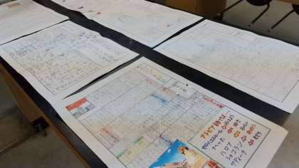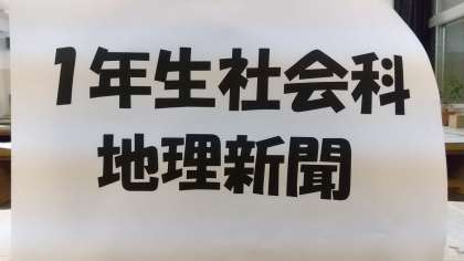 「文化祭」展示作品を紹介します。まずは、西理科室から。「1年生社会科地理新聞」です。「中国新聞」「エジプト新聞」等いろいろな国について調べています。