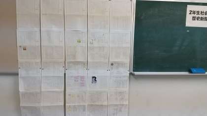 続いて「2年生社会科歴史新聞」です。織田信長、徳川家康、伊達政宗から比較的現代に近い時代では、坂本龍馬、野口英世についての新聞が見られます。