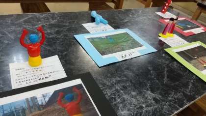 作品の題名としては、「協力」「With you」「希望を持とう」「全てを包む」「前進しようとしている人」「二人で一つ」などがありました。