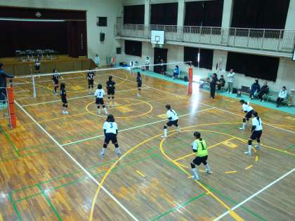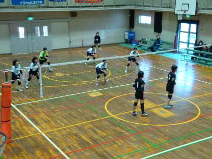 『大阪市中学校バレーボール交流大会』の予選リーグが、本校体育館を会場に行われています。写真は、第1試合の対 鯰江(なまずえ)中学校戦の様子です。第1試合は、残念ながら負けましたが、リーグ戦なのであと2試合あります。「バレー部ガンバレー!」