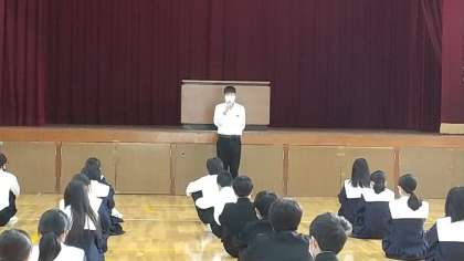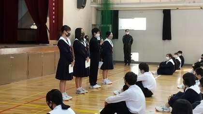11月9日(月)、後期生徒会役員・学級委員認証式を行いました。初めに前期生徒会を代表して会長から退任のあいさつがありました。