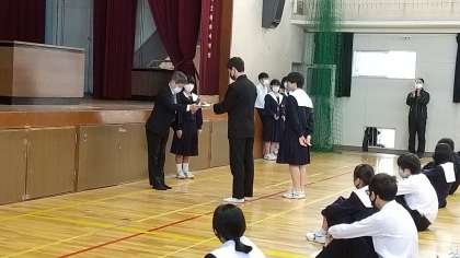 その後学級委員を代表して、3年生2組の学級委員長2名に認証状が手渡されました。