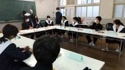ポーズをとる余裕も出てきました。新しい取組について生徒会から提案がありました。1年生も2年生も積極的に発言していました。頼もしい限りです。今後、生徒会から具体的な話があると思われます。