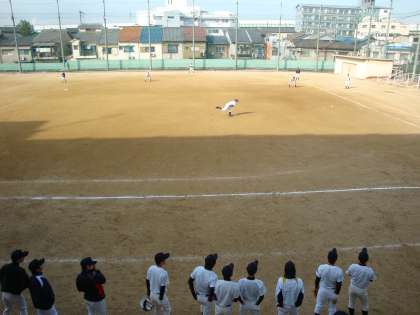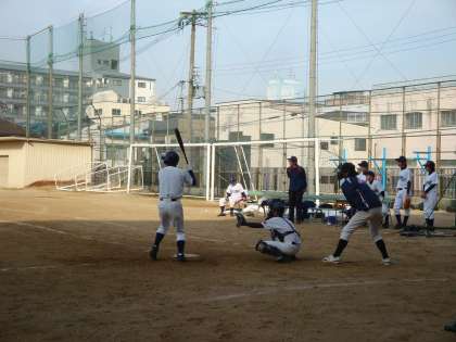 朝から野球部は、城東区の放出中学校と練習試合を行っています。寒いですが、天候は良く、気持ちの良い空気がいっぱいの中、子どもたちの元気な声が飛び交っています。