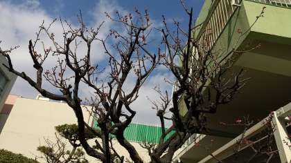 写真は、体育館前に咲き始めた梅の花です。いつのまにか春らしくなってきています。緊急事態宣言が延長になりまだまだ大変ですが、生徒の皆さんは、引き続き学校生活をがんばってください。