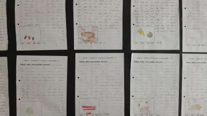 「My favorite food is pizza.Because delicious food pufs on it.And I love italian foods very much. This food is from America.〜」