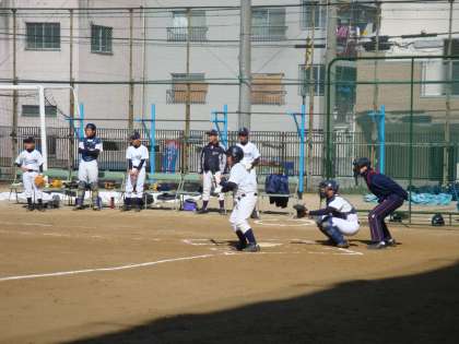 野球部は、春の大会がもう間近にせまっています。多くの試合経験を重ねて、素晴らしい結果としてあらわれることを願っています。今日は、浪速区にある木津中学校との対戦です。朝から元気な声がグラウンドに響きわたっています。
