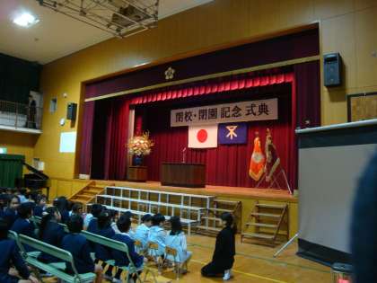 校区小学校、幼稚園の閉校園式典が行われ、本校在校生も参列しました!