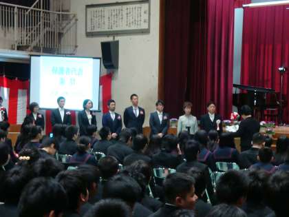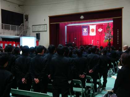 写真は、「蛍の光斉唱」と「保護者代表謝辞」の様子です。