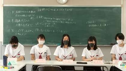 新しい生徒会役員、各種委員会代表、各学年代表が集まり、それぞれが作成した目標の共有などを行いました。