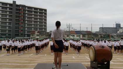 生徒の入場です。写真は、3年生の様子です。全クラス入場後、生徒会会長が開会を宣言しました。