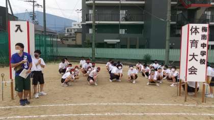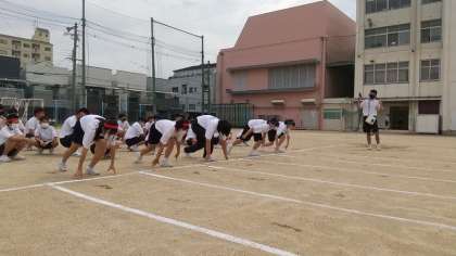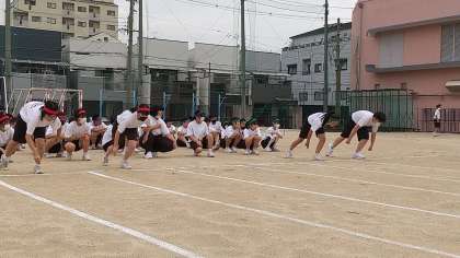 いよいよ競技が始まります。最初は50m走です。入場門のところで待機してアナウンスを待ちます。
