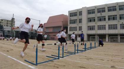 引き続き50mハードルです。走るタイミングとハードルを跳び越すタイミングが難しそうです。