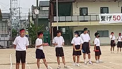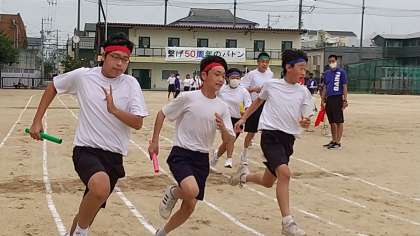 3人4脚の後、一旦教室に戻って20分間の休憩をはさみ、後半はリレー種目となります。まず、男女混合リレーです。。
