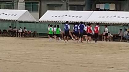 このレースは男女2人ずつ、100mずつ走ります。男女の走る順番は各クラスの作戦となります。第1走者6人の中に女子が1人いますね。