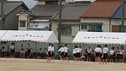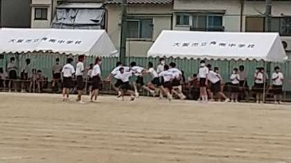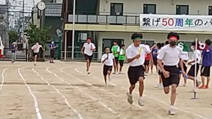 第1走者からバトンを受け、第2走者は200m走ります。3年生、1年生と続いています。その後第3走者へバトンが渡されました。