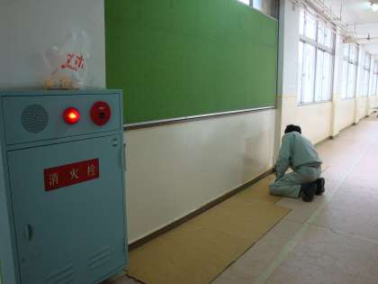 4月1日に梅南中学校の教職員も新体制でスタートしました!今年度の目標のひとつに『学習環境が整った美しい学校づくり』を掲げています。本日も職員室前廊下の腰板を管理作業員さんに、きれいにペイントしていただきました。美しい環境は子どもたちの心を穏やかにし、学習へのモチベーションも向上にもつながると考えています。今年度も、全員清掃に取組み、校内美化活動を習慣化させるよう努力します。
