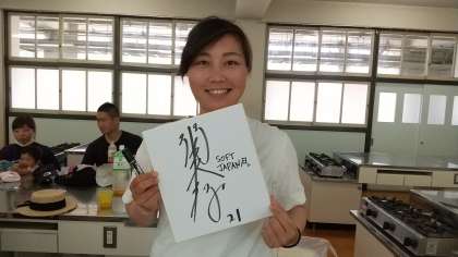 サインを書いていただきました。自身のサインと背番号の21、そして「SOFT JAPAN」の文字、晴れやかな表情が見えます。