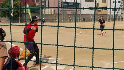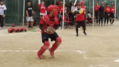 市内の中学生との親善試合も楽しみました。中学時代に戻りピッチャーもやってみました(写真1枚目)。さすがにバッターとしては、レフト側ネット上段に突き刺さるようなとてつもない打球をかっ飛ばしていました。途中から本業のキャッチャーの姿も見せてくれました。