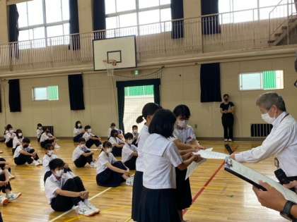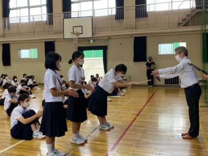 2学期が始まりました。始業式の前に部活動の表彰状の伝達がありました。