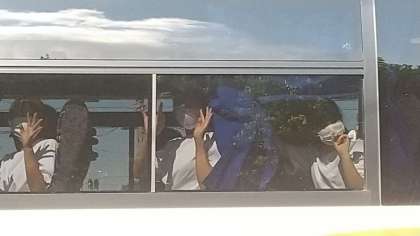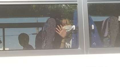 いよいよ出発です。見送りに手を振って応えています。