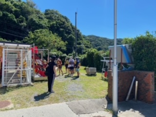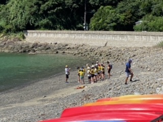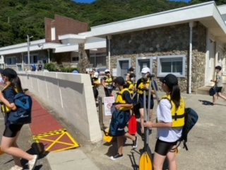 海の活動がはじまります。ライフジャケットを着て、パドルを持って、海辺に集合します。