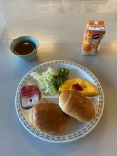 朝食はロールパン定食です。