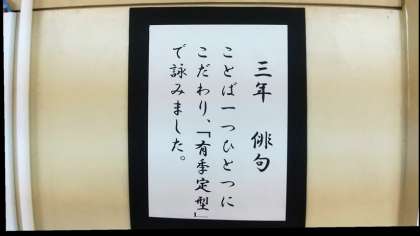 3年生「俳句」です。思い思いの俳号を名乗り、詠まれています。