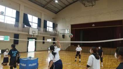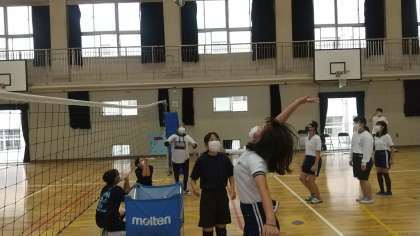 バレーボール部です。最後にスパイク練習をしました。ジャンプしながらボールを打つのはすごく難しいことですが、「経験者?」と思うくらい上手!に打てている6年生もいました。とにかくみんなとても楽しそうでした!