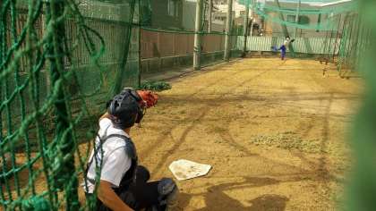 ピッチングゲージ内では、バッテリーがピッチング練習を行っていました。