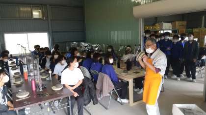 信楽陶宛の方にあいさつ、その後手びねりの説明を聞きました。