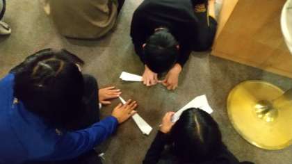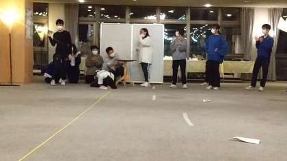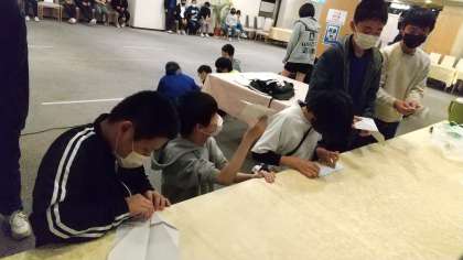 続いて「紙飛行機飛ばし対決」です。2分で紙飛行機を作成し、1人ずつ飛ばし、その飛距離を競う、というゲームです。