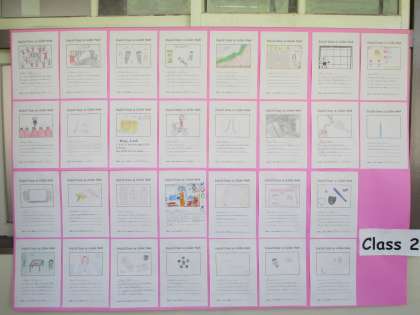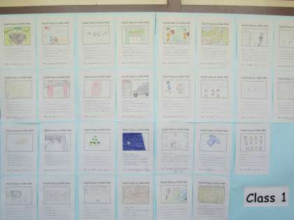 家族とでかけた、友達と遊んだ、クラブをがんばったなど・・・英語と絵でみんなうまく表現していました。