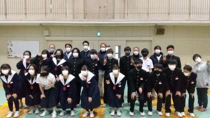 3−1、2−1,2−2です。オリックス・バファローズのフェイスタオルや色紙の入った紙袋を持った生徒もいます。