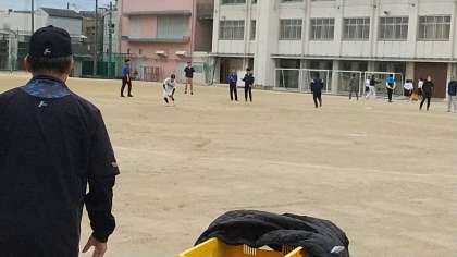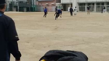 ノックが始まりました。緊張感の漂う中、ショートゴロを1塁に送球します。