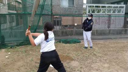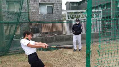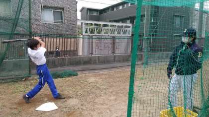 ゲージ内では、バッティング指導も始まりました。コーチから一球一球声をかけていただきました。