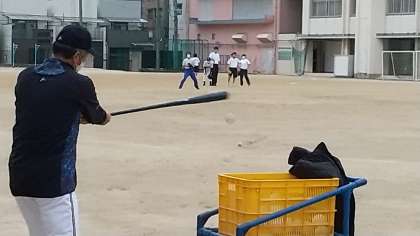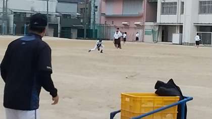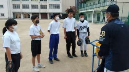 別グループのノックの様子です。ノックの後、コーチからお言葉をいただきました。左肩のデザインされたバファローズの「B」のマークがかっこいいですね。