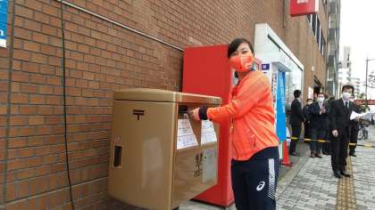 あいさつの後、「ゴールドポスト」設置後初の投函を清原選手自身が用意した手紙により行われました。記念すべき第1回目です。
