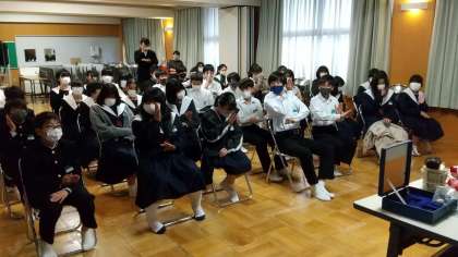 生徒から「好きな色は?」「今からでも手話が覚えられますか?」などの質問もありました。最後に手話で「ありがとうございました」とお礼をしました。