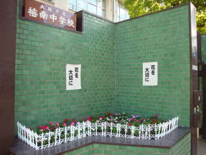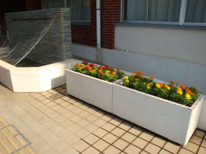 管理作業員さんのご協力により、校門前花壇の花が植え替えられました。写真左は、「日々草」です。玄関を入ったところには、プランターに「マリーゴールド」が咲いています(写真右)。「学習環境の整った美しい学校」は、今年度の組織目標の第一の目標であります。