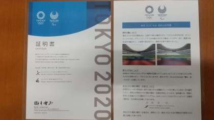 写真2枚目は、表彰台に添付された金属製のプレートです。その番号により、表彰台が使用された競技、種別、会場が特定されるそうです。写真3枚目は表彰台の「証明書」です。橋本聖子大会組織委員会会長名で、ソフトボール、野球の表彰時に横浜スタジアムで使用されたことなどが証明されています。「大会資産の保管・利用」については遵守事項があり、大会組織委員会に遵守事項を守り大切に扱う旨の誓約書を提出しています。