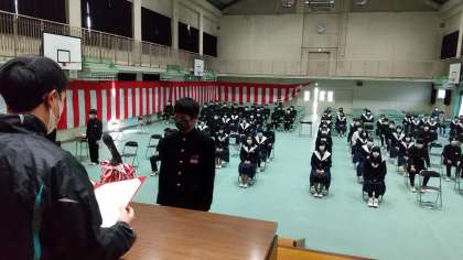オリンピックの表彰台の上で名前が呼ばれます。卒業証書は、証書ファイルに入った状態で受け取ります。
