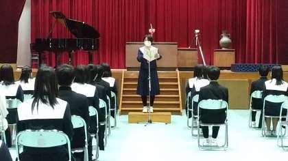 現生徒会会長による「在校生代表送辞」です。