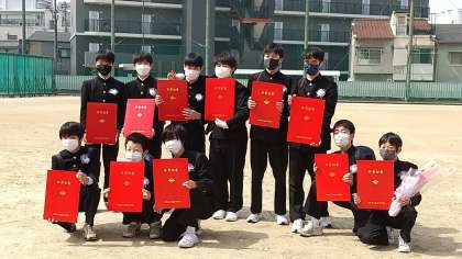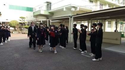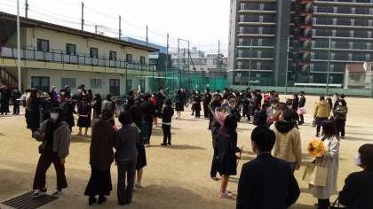 天気にも恵まれ、外も暖かくて良かったです。一旦、正門から退場した卒業生たちは、西門からグランドに入り、生徒同士、保護者の方等と記念撮影などをしました。
