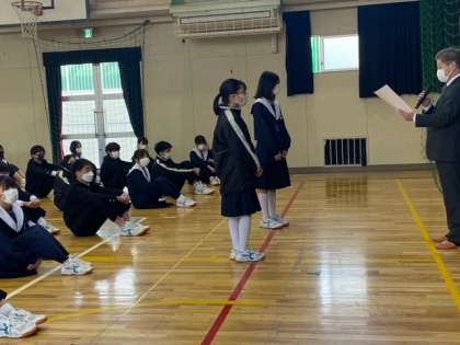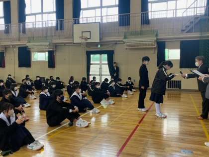 修了式は、修了証を各学年代表1名ずつが受け取り、その後、春休みをより良く過ごすためのお話がありました。