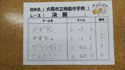 1組エルゴ体験6 結果発表。