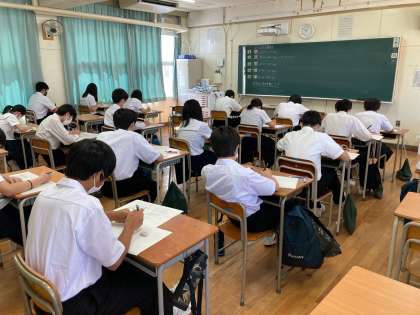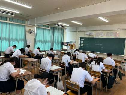 3年生は本日、第一回実力テストの受験です。進路に直結する大切なテストです。このテストのために、休み時間や家庭で懸命に勉強を頑張っている生徒も見受けられました。入試への意識を高め、受験生としてさらなる高みを目指しましょう!