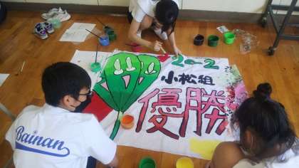 2年の学級旗を作成している様子です。
