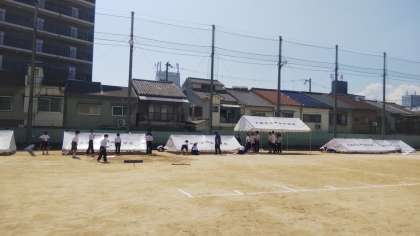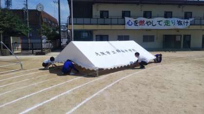 もう少しでテントができあがります